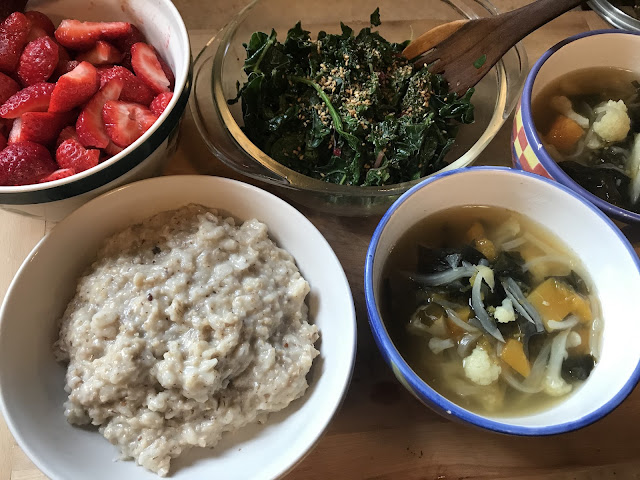 - Simple Macrobiotic Meals w/ Oat Millet Porridge, Miso Soup, Brown Rice w/ Peanuts, Pressed Napa Cabbage Salad
